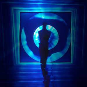 Former US national champion gymnast Riskin uses his physical abilities to create art in his performances. As a former painter and gymnast, he creates body-mounted instruments that extend his movements with light.